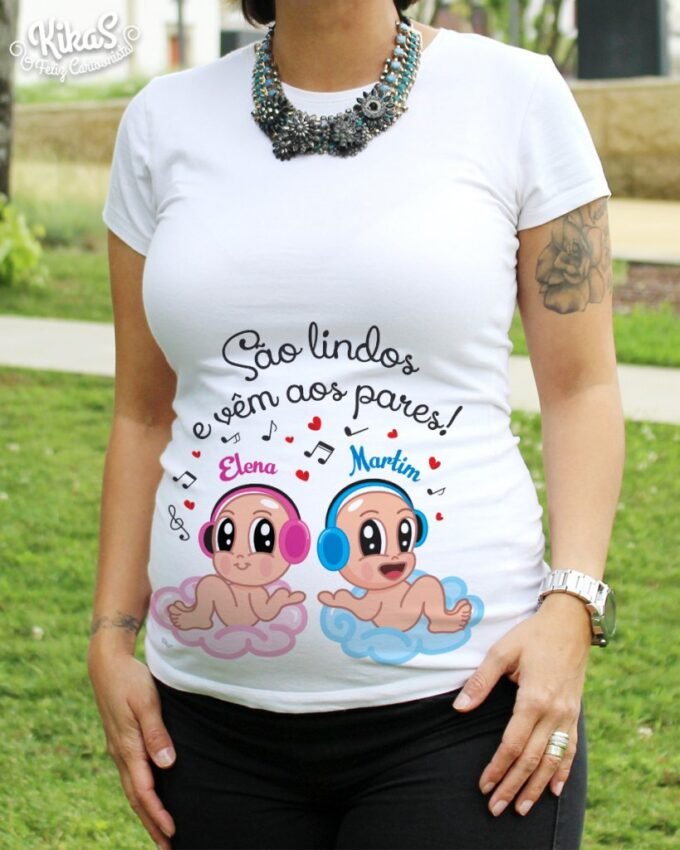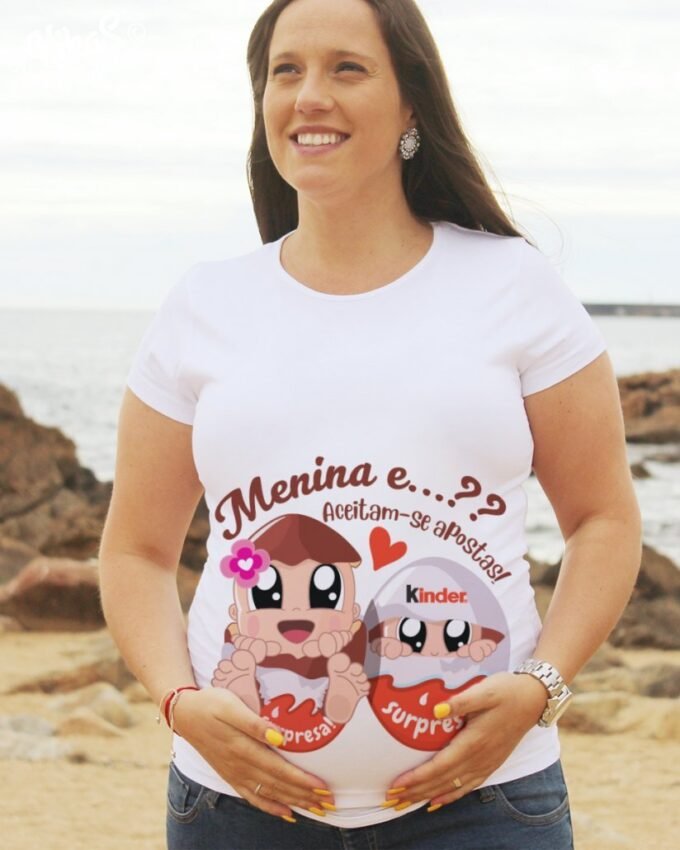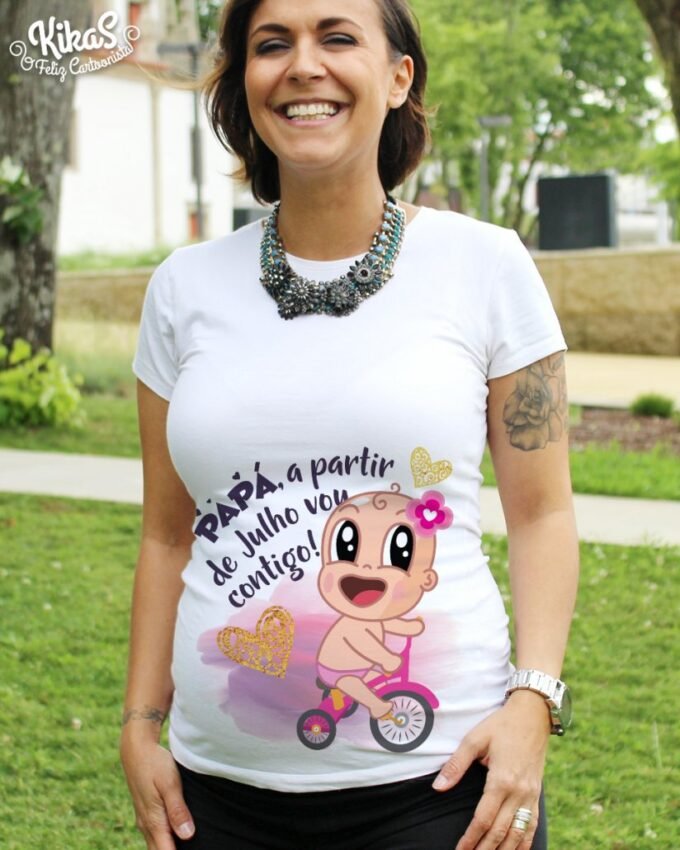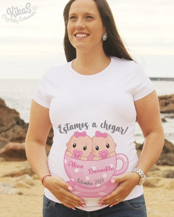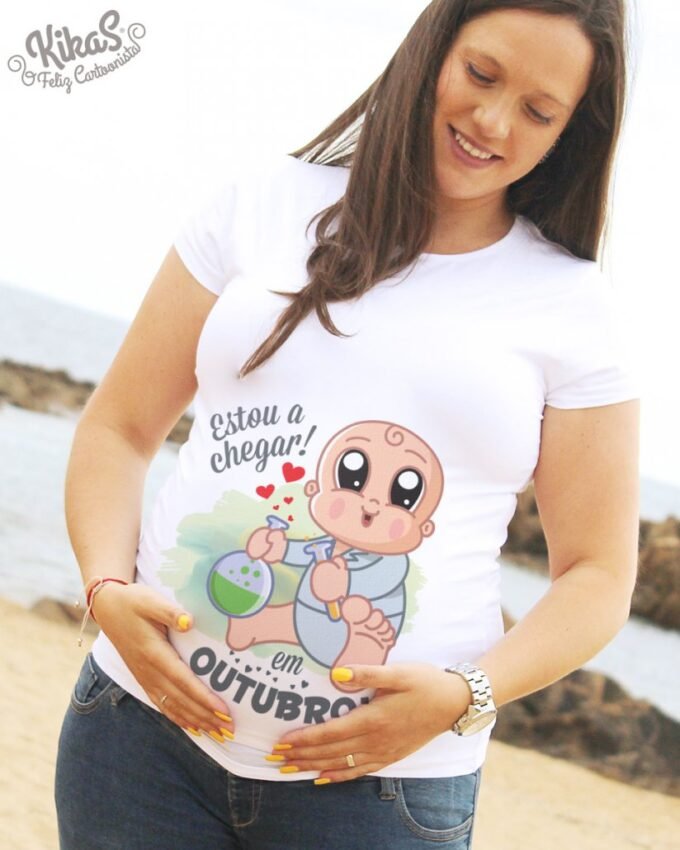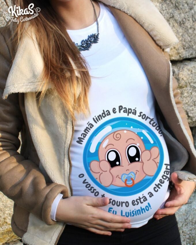 T-Shirts de Grávida personalizadas para menino ou menina, com o nome e bonequinho do Bebé! São perfeitas para vestir no Chá de Bebé, Sessões fotográficas ou mesmo no dia a dia. Super confortáveis com cinta elástica e corte Belly-Fit, adaptam-se à barriguinha durante toda a gravidez.