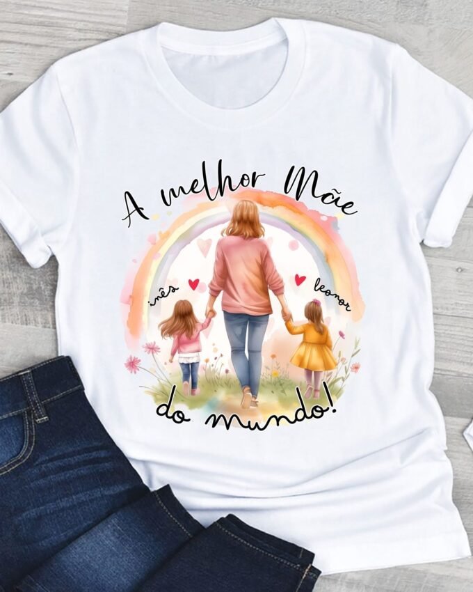 T-Shirts personalizadas para a Melhor Mãe do Mundo, com desenhos muito fofinhos e os nomes dos filhotes