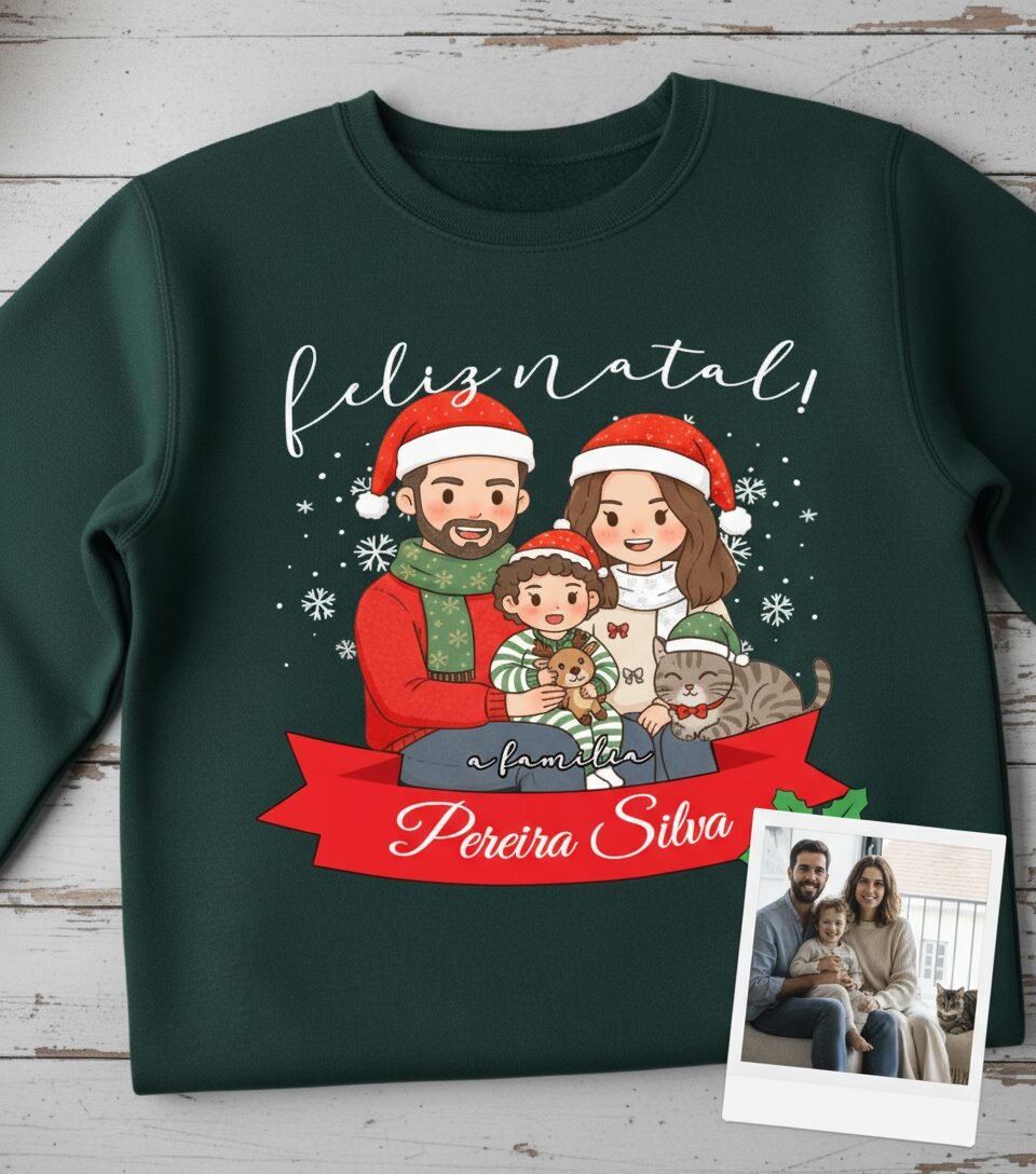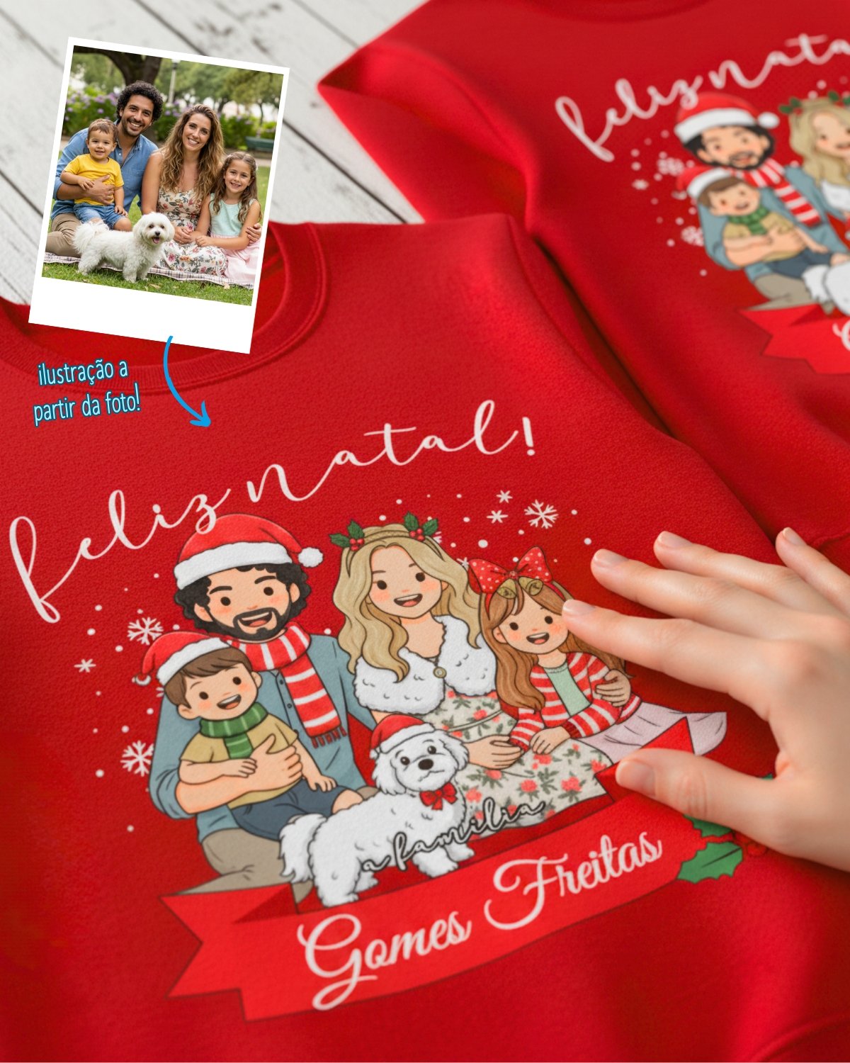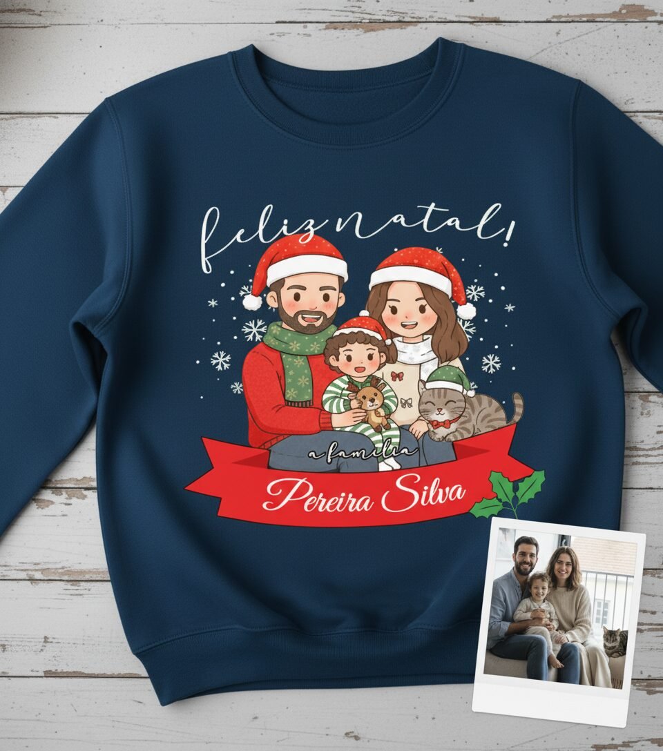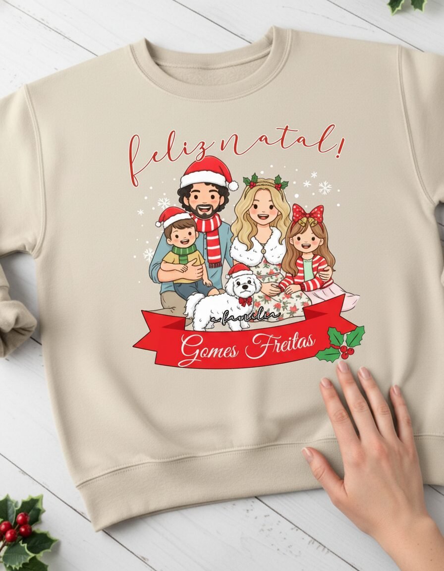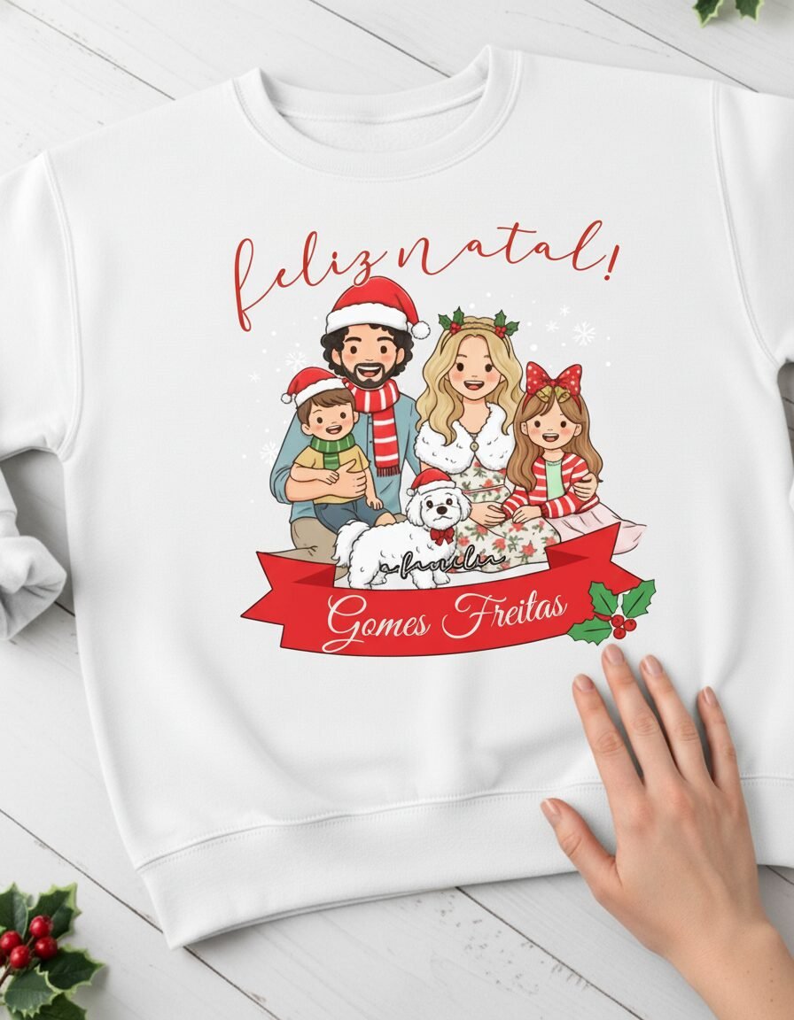 Camisola de Natal divertida com desenho 100% original com os bonequinhos da tua família. Cada ilustração é feita a partir das caracteristicas da pessoa. Camisolas cardadas, muito macias, confortáveis e quentinhas.