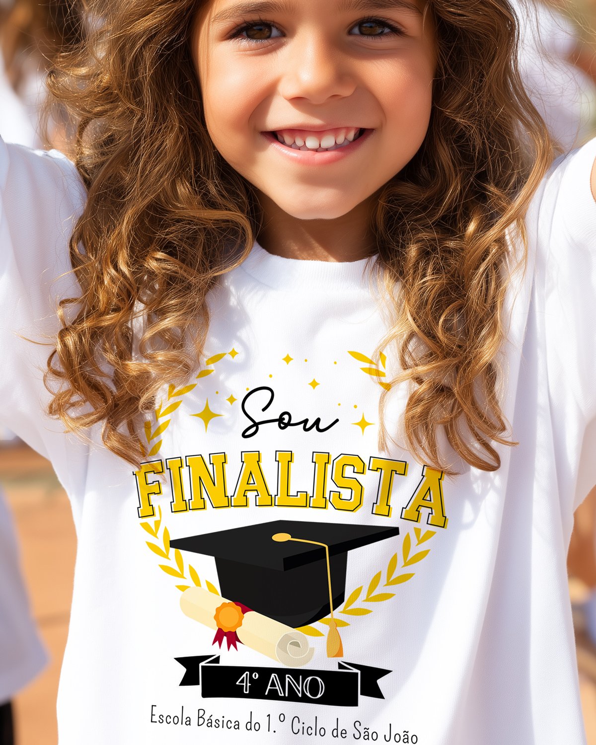 T-Shirts Finalistas 4º Ano, para festejar o final do 1ºCiclo! Este modelo é mais acessível para os Papás, contudo não é personalizado com nome nem bonequinho(é possível colocar o nome do Infantário ou Escola).