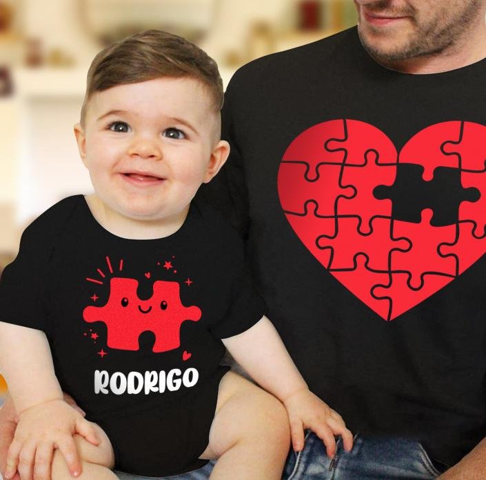 Conjunto de 2 T-Shirts, Adulto e Bebé/Criança. A T-Shirt é 100% algodão, pode personalizar o texto e as cores ❤